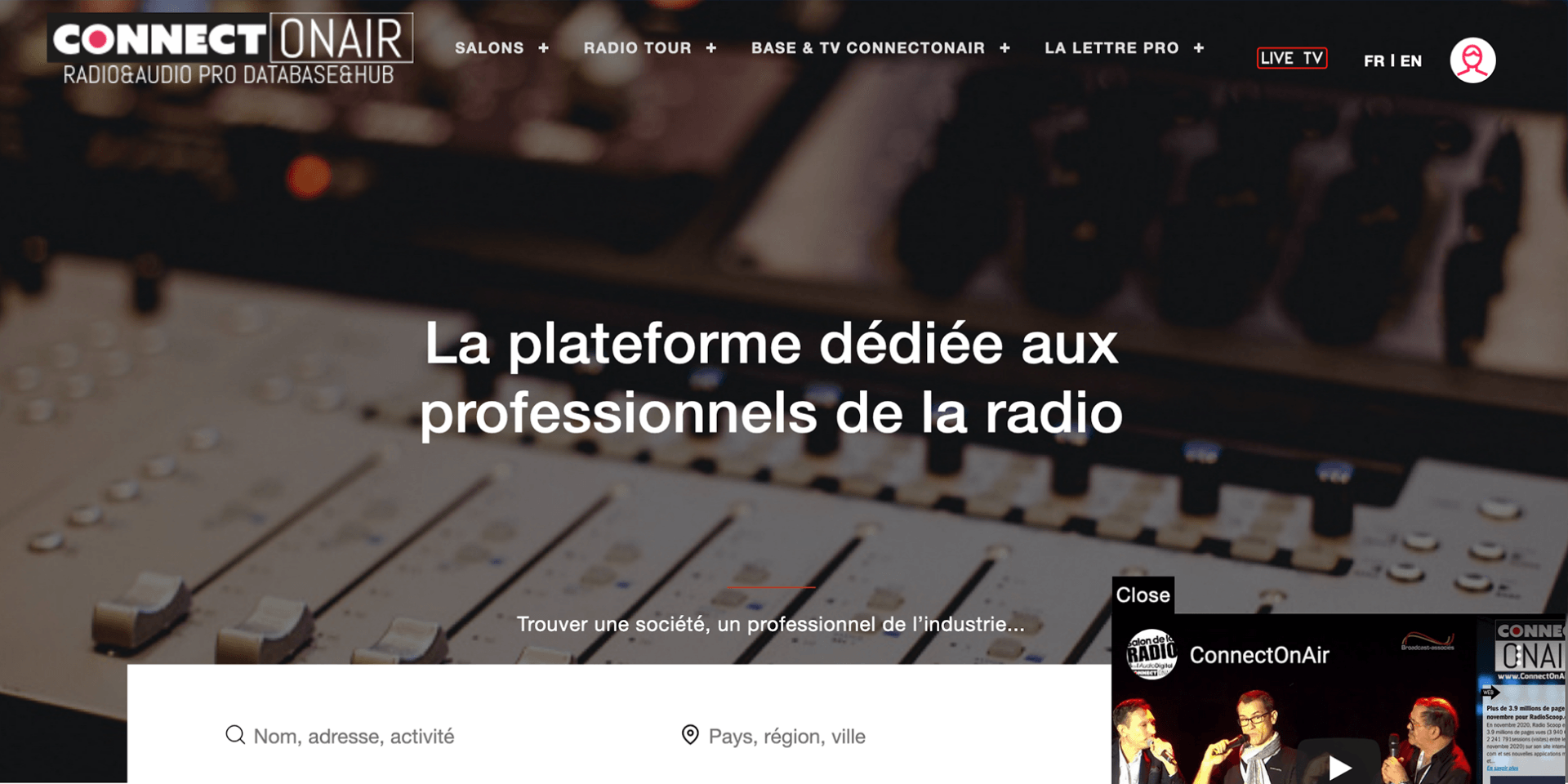 ConnectOnAir est la plateforme d'inscription aux événements et aussi la coeur des Editions HF. Cette base de données est mise à jour quotidiennement par les équipes des Editions HF et possède un flux vidéo dédié aux acteurs de la radio et de l'Audio Digital.